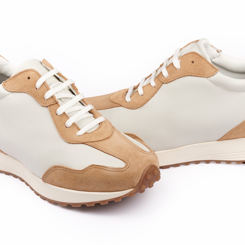 Eigenschaften: Die Melbourne-Sneakers mit Erhöhungen haben eine einzigartige Sohle, die Sie zum Trendsetter macht. Dieser Schuh ist aufgrund seines Wildleder-Obermaterials, seiner Blütenblatt aus erstklassigem Glattleder in eisweißer Farbe und seiner Vielseitigkeit, da sie Ihr Outfit mit Jeans, Sportbekleidung, Trainingsanzügen, Bermudas, Shorts, Chinohosen und Anzughosen komplettieren können, im Trend.