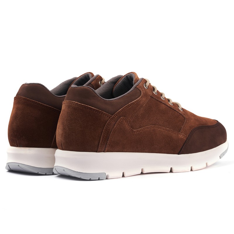 Berna. Zapatos con alzas de diseño italiano para hombre de estilo deportivo completamente flexibles. Un diseño con cordones y terminado en piel serraje-hidrofugado. Acabado por dentro en textil. Estos zapatos con cordones de estilo informal son apropiados para combinar con pantalones chinos, vaqueros o cortos. Está hecho con el sistema Trockenfuss, que absorbe el sudor y elimina el mal olor. Suela exterior de goma de caucho. Puede usar un spray hidrofugante para evitar manchas. No dar crema para mantener su acabado afelpado. Truco: Se puede utilizar spray repelente del polvo (hidrofugante para mopas).