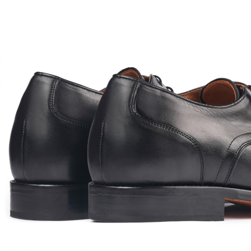 Birmingham. Zapatos con alzas de vestir para hombre fabricados en piel de ternera tafilete. Interior forrado en fina piel. El material de cuero está presente en estos zapatos tanto en las suelas como en el tacón ultrarreforzado. Son perfectos para llevar un estilo arreglado y cómodo al mismo tiempo. Zapatosconalzas.com recomienda quitar el polvo de sus zapatos con alzas con un paño de algodón seco y frotar para dar brillo. Se puede dar crema incolora o al tono de la piel. Truco: frotar con una esponja suave con crema natural incolora.