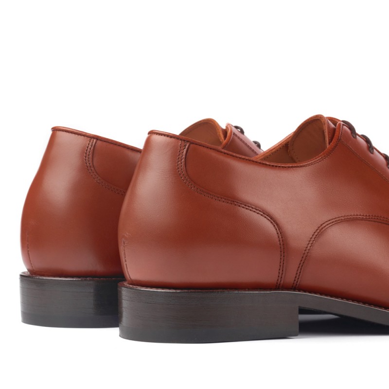 Chaussures Réhaussantes. Dessus en peau de croupe de poulain.Doublure en peau fine. Semelle double en cuir naturel et cousu Goodyear. Talon en cuir naturel renforcé.