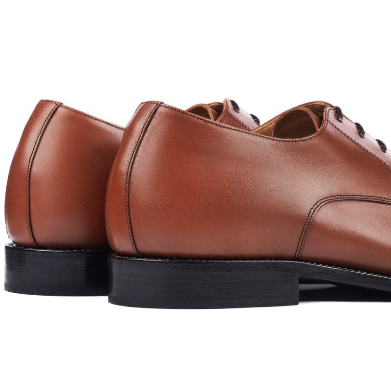 Chaussures Réhaussantes Bordeaux. Dessus en peau de croupe de poulain.Doublure en peau fine. Semelle double en cuir naturel et cousu Goodyear. Talon en cuir naturel renforcé.