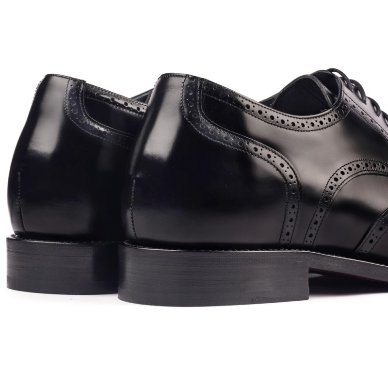 Atlanta. Chaussures Réhaussantes . Dessus en peau de croupe de poulain.Doublure en peau fine. Semelle double en cuir naturel et cousu Goodyear. Talon en cuir naturel renforcé.