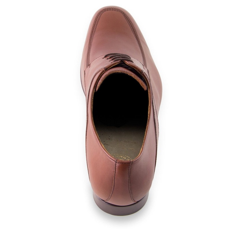 Chaussures Réhaussantes. Dessus en peau de veau marocain. Doublure en peau fine. Semelle double en cuir naturel. Talon en cuir naturel renforcé.