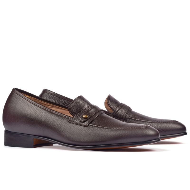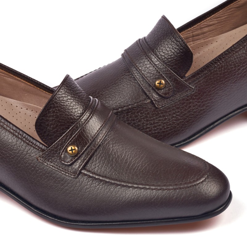 Scarpe con rialzo. Rivestite in pelle di vitello e completamente foderate in pelle pregiata. Suola in cuoio naturale, cucita; tacco in cuoio naturale super rinforzato. Mocassino classico, in cuoio, con venature alla vista: la scelta perfetta per vestire elegante. Zapatosconalzas.com raccomanda di usare un panno di cotone asciutto e strofinare il più possibile sulla scarpa per eliminare la polvere e donare lucentezza alla pelle. Successivamente, si consiglia di passare una crema incolore o dello stesso tono della pelle. Trucco: Se qualche macchia dovesse persistere passare un panno inumidito con acqua e sapone neutro.