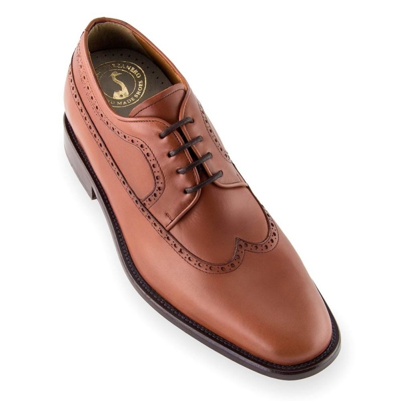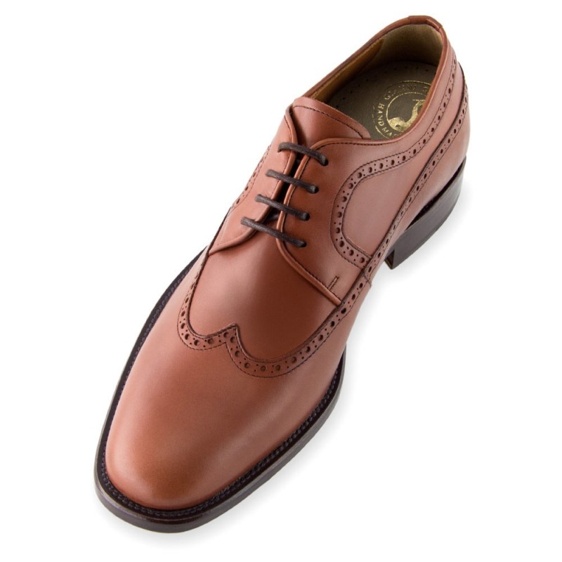 Scarpe con rialzo. Rivestite in pelle di vitello e completamente foderate in pelle pregiata. Suola in cuoio naturale, cucita; tacco in cuoio naturale super rinforzato.