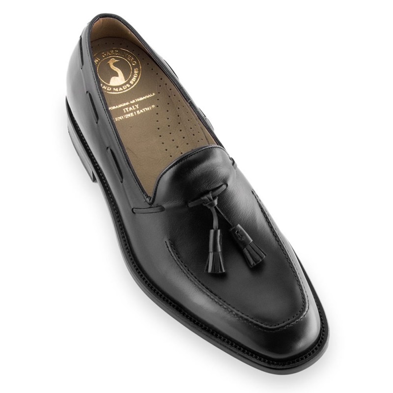 Mocassino stile italiano, impreziosito da una coppia di nappe. Elegante ma versatile allo stesso tempo.
