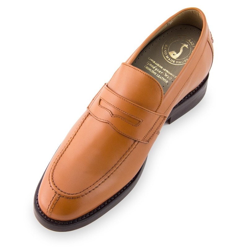 Scarpe con rialzo. Realizzate in pelle cordovan (di cavallo) e completamente foderate in pelle pregiata. Doppia suola in cuoio naturale e cucito Goodyear. Tacco in cuoio naturale super rinforzato.